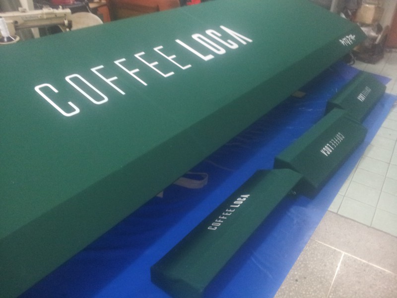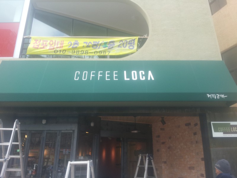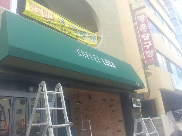 별도의 간판없이 고정어닝에 인쇄를 하여 간판대용으로 시공하였습니다.