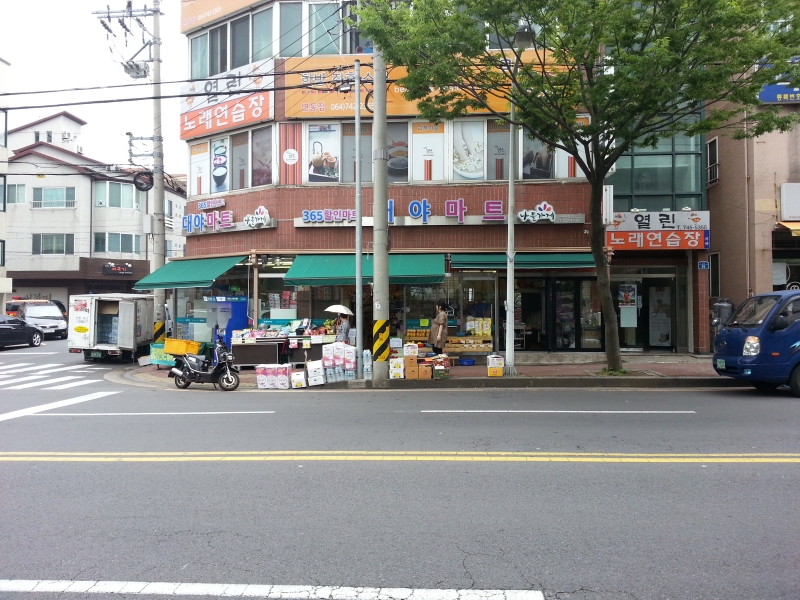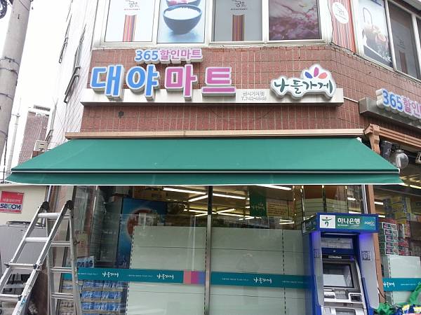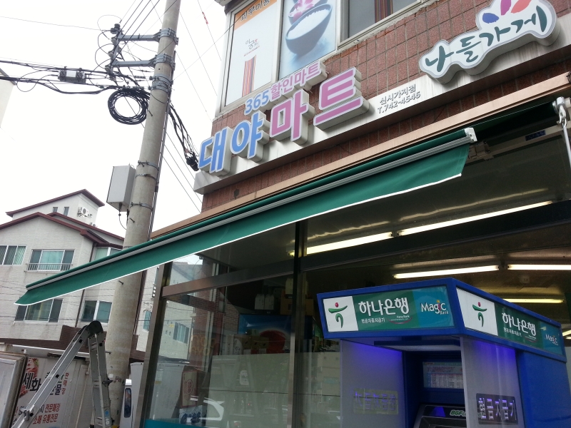 마트입구및 윈도우에 수동어닝을 설치하였습니다.