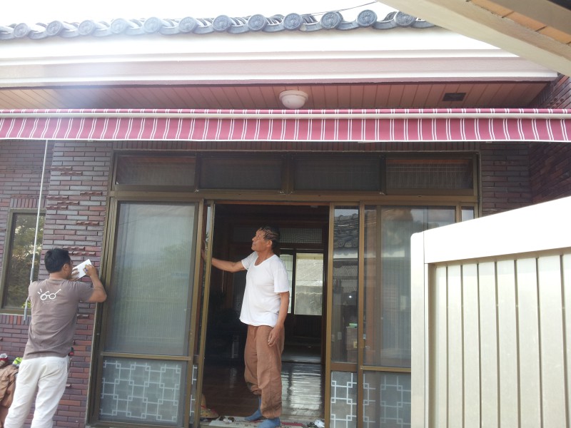 아침햇빛때문에 수동어닝을 설치하였습니다.