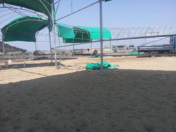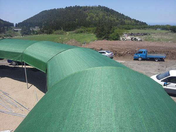 12.천막위에 차광망을 설치해나가는 모습입니다.