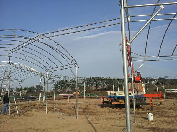 9.지붕구조물위에 천막원단을 부착해가는 모습입니다.